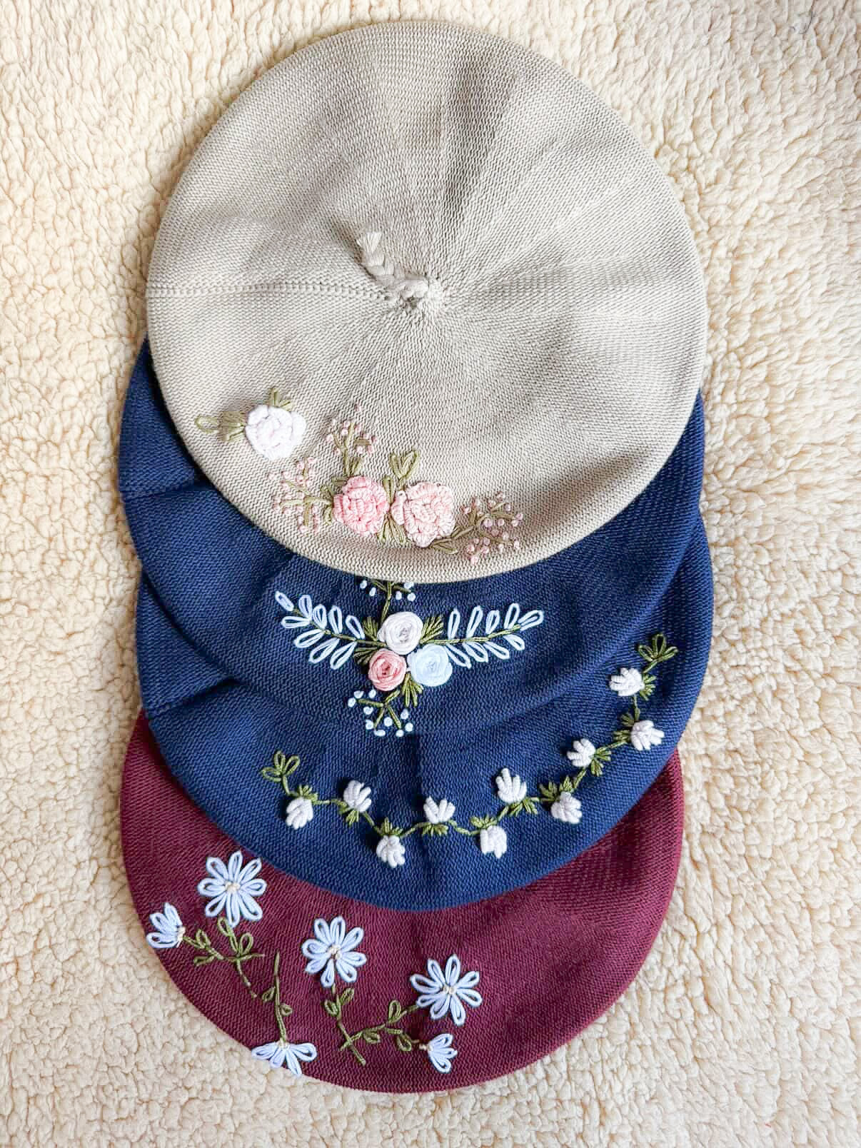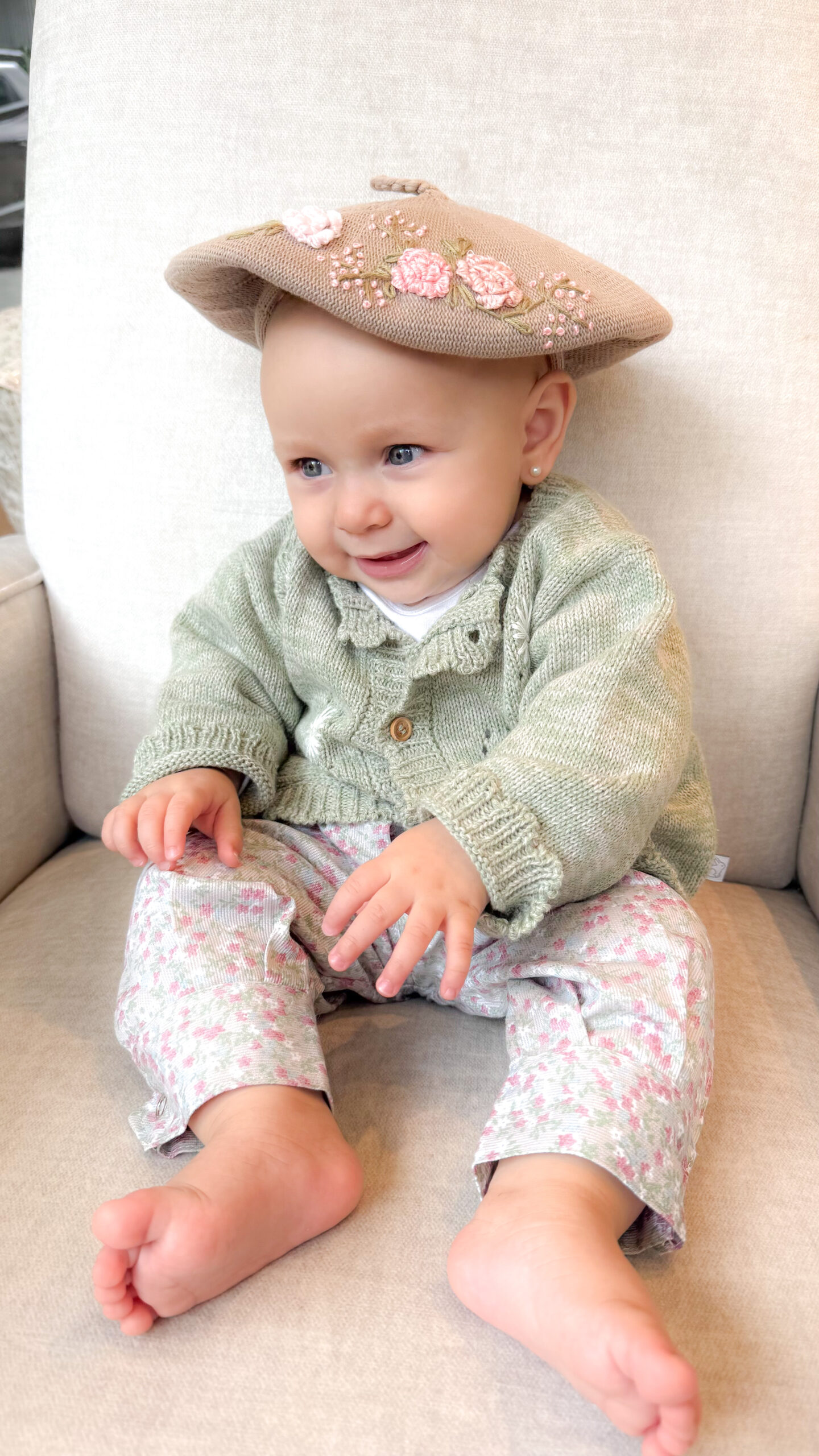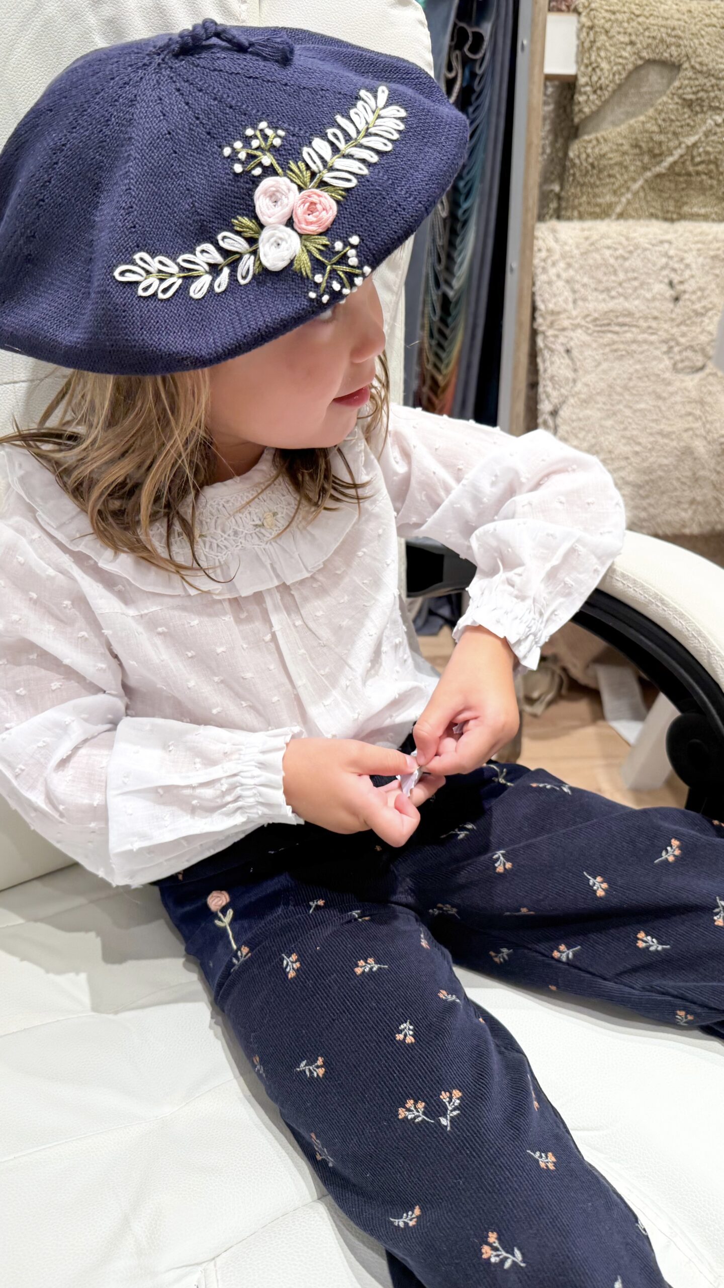 Boina Liberty bordada a mano, disponible en tamaño para bebé de 3 a 12 meses (tamaño chico) y de niña de 1 a 12 años aprox. (tamaño grande).