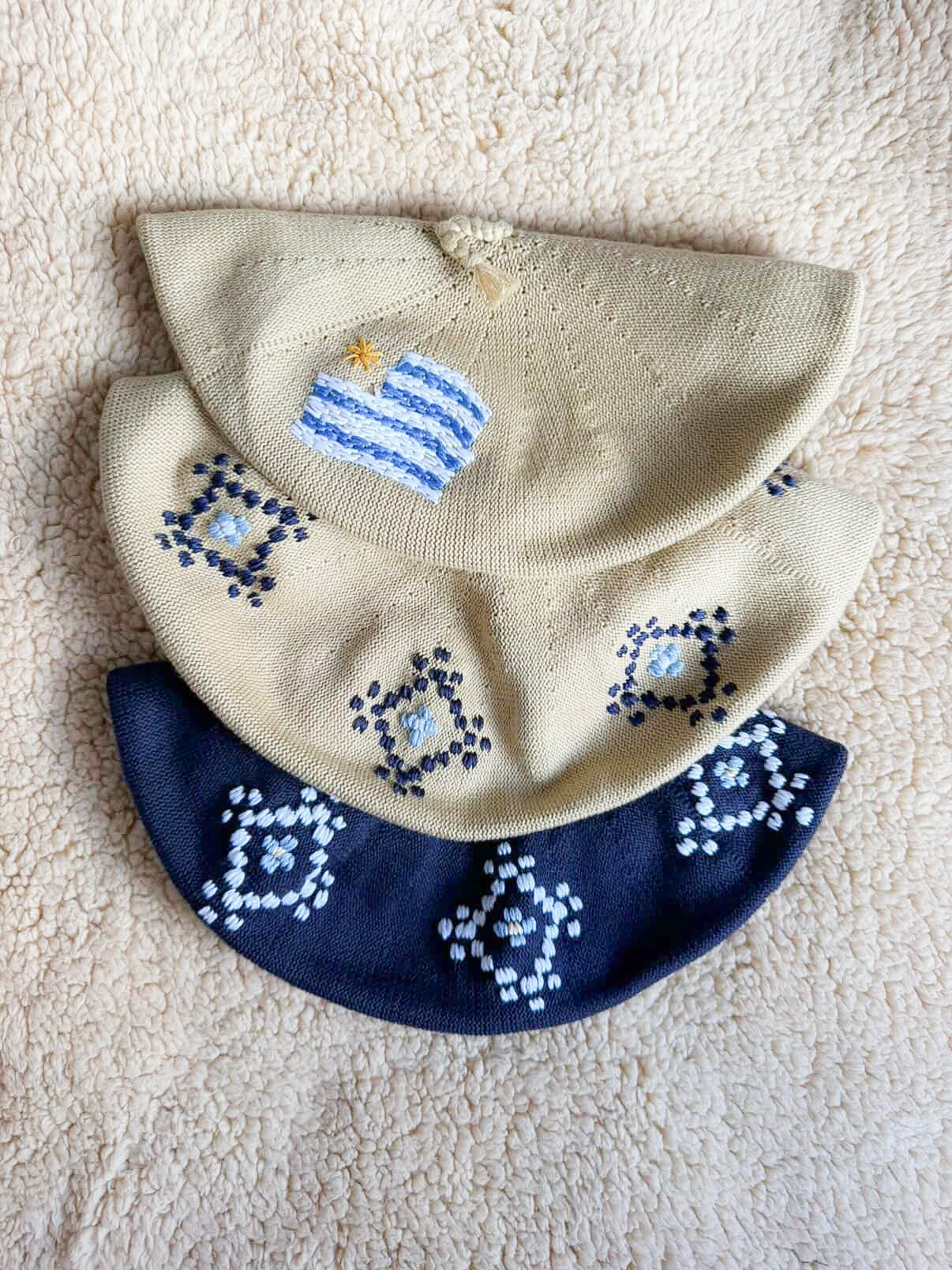 Boina Pampa bordada a mano, disponible en tamaño para bebé de 3 a 12 meses (tamaño chico) y de niño de 1 a 12 años aprox. (tamaño grande).