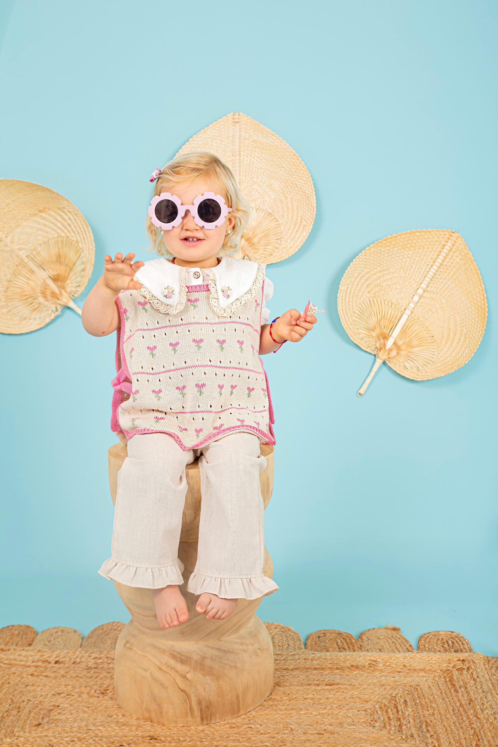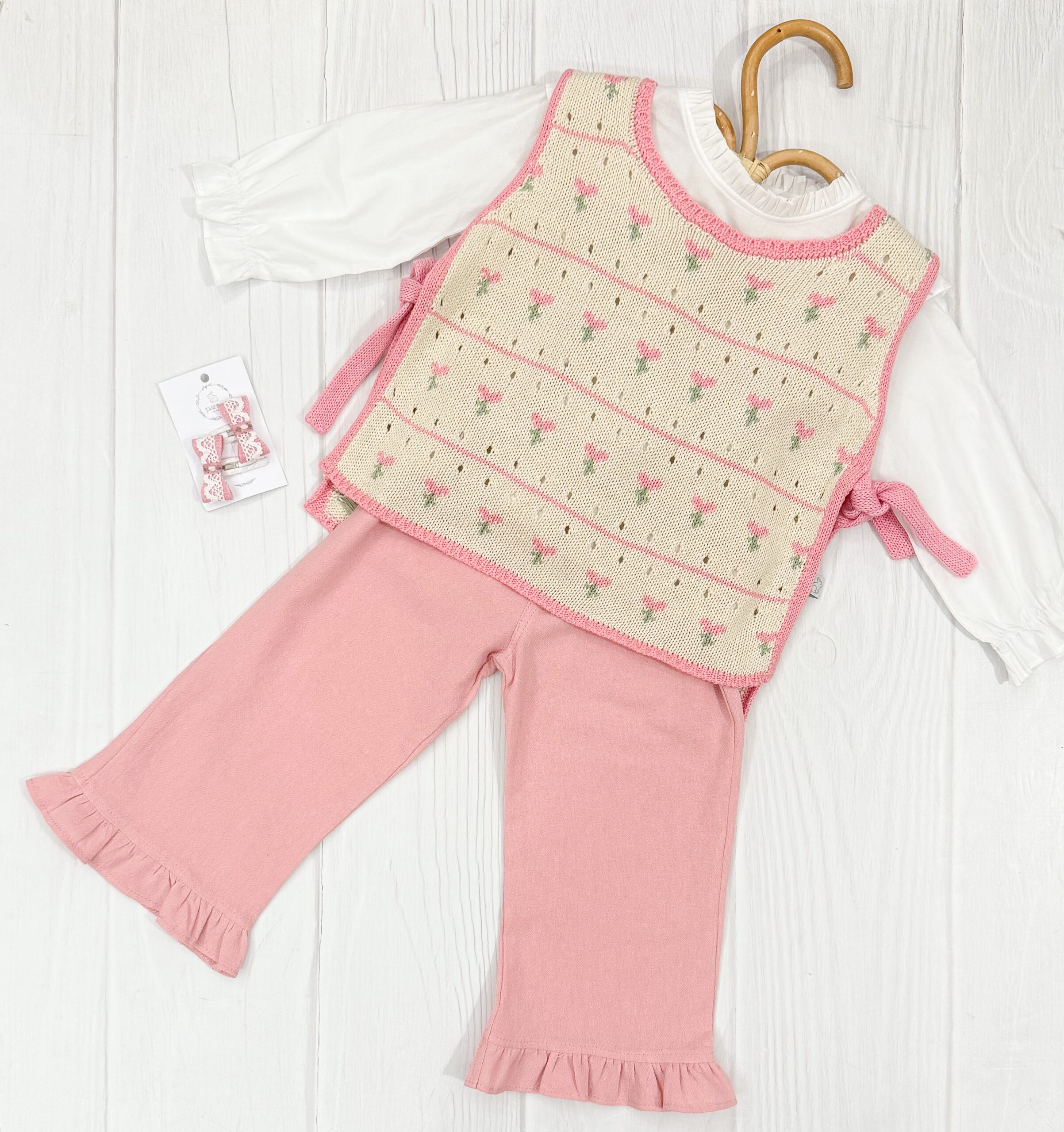 Chaleco Biarritz con lazos para ajustar, disponible en talles 6-12 meses / 1-2/2-4/4-6/6-8/8-10 años.