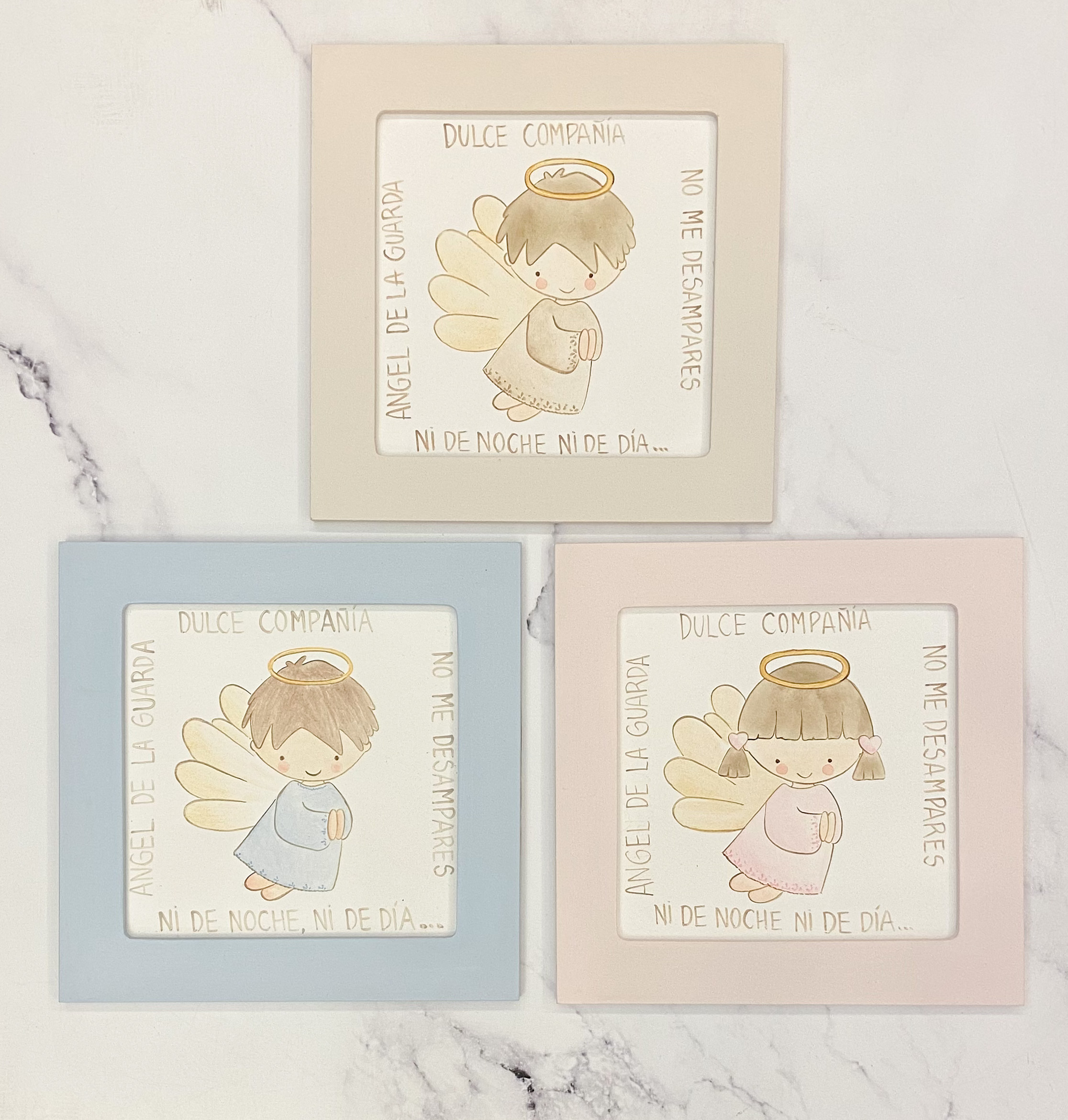 Cuadro Angel de la guarda cuadrado de 30 x 30 cm pintado a mano.