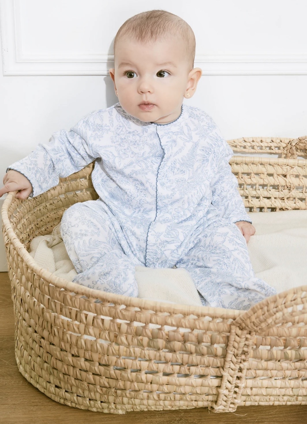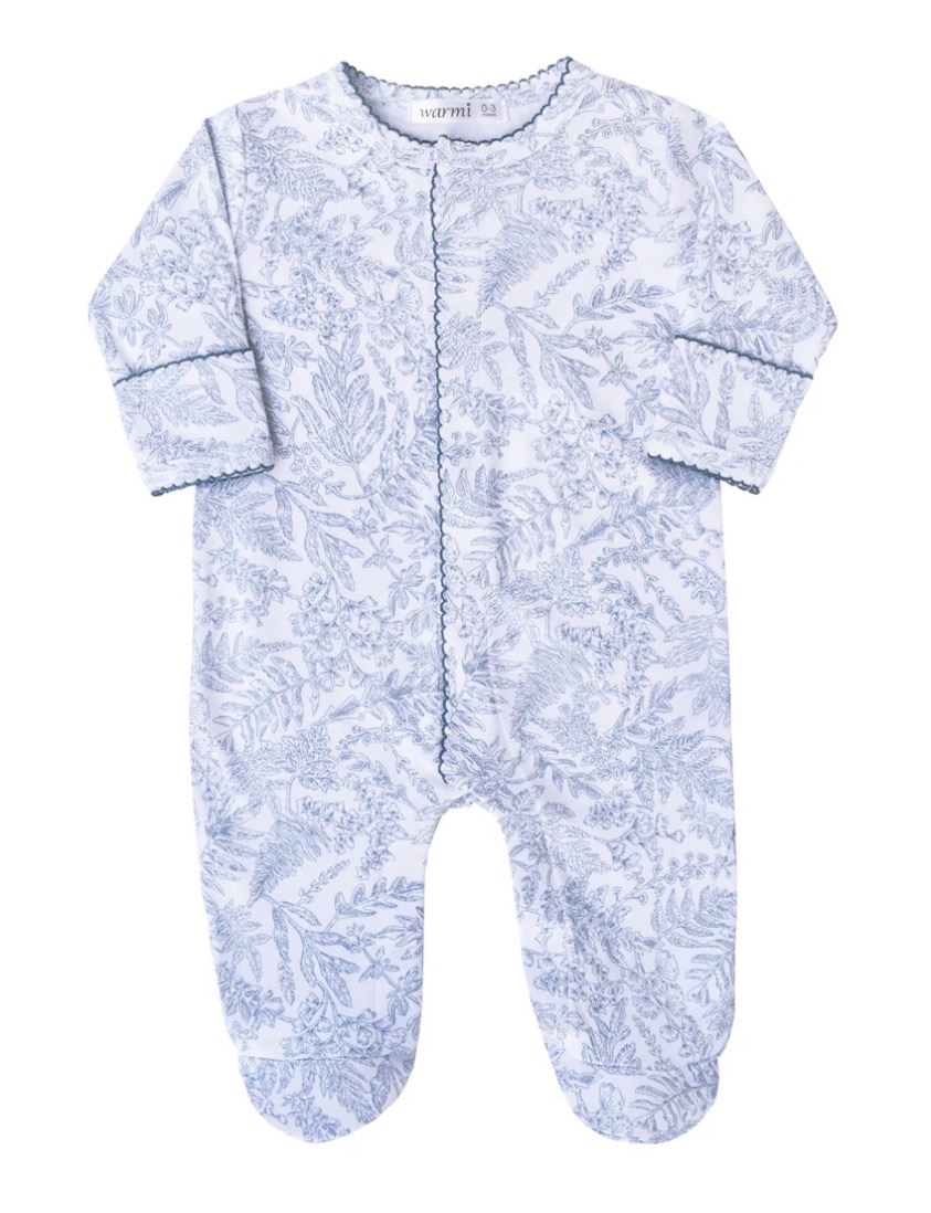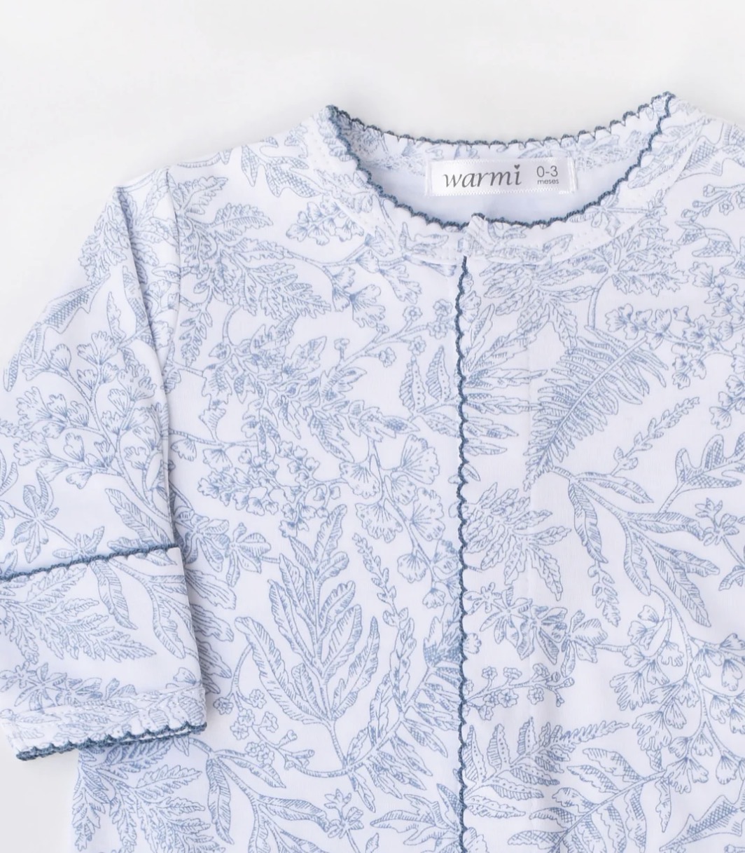 Enterito en algodón Peruano estampado Toile de Jouy, disponible en talle Rn/0-3/3-6/6-9/9-12 meses.