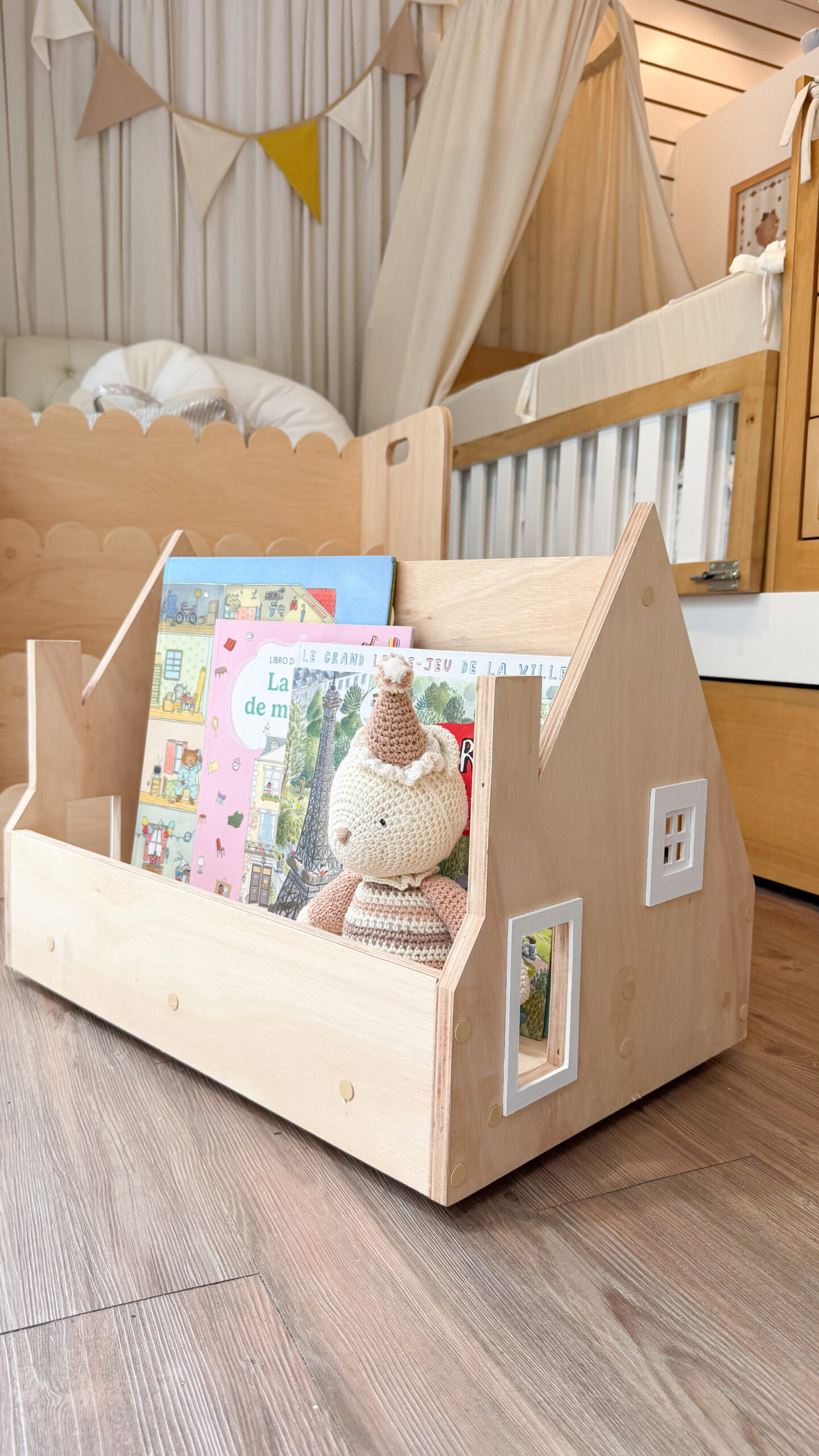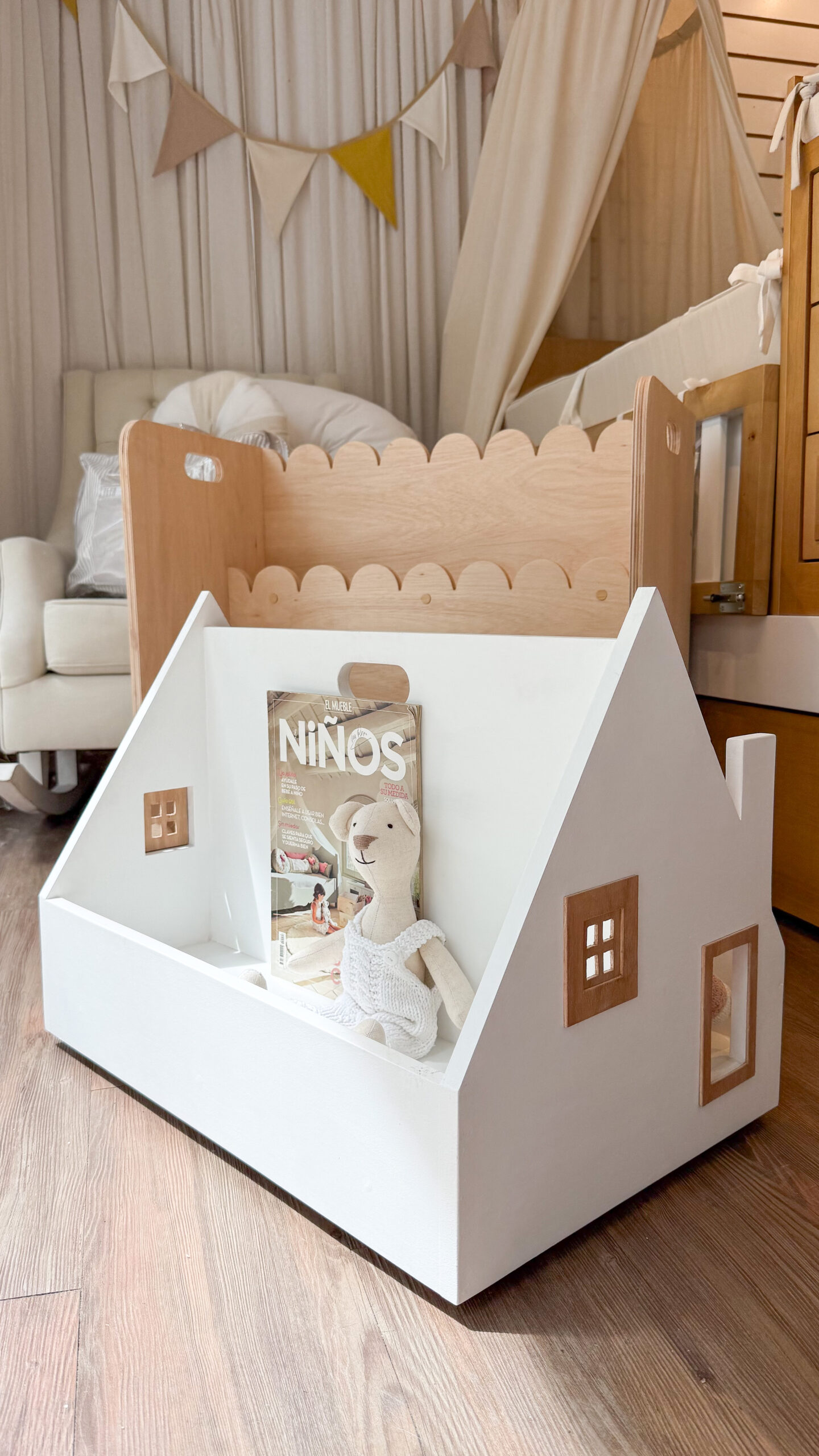 Librero Farm House de pie con asa para su fácil traslado, ruedas giratorias 360, división y amplio espacio de guardado. Ideal para juguetes y/o libros.