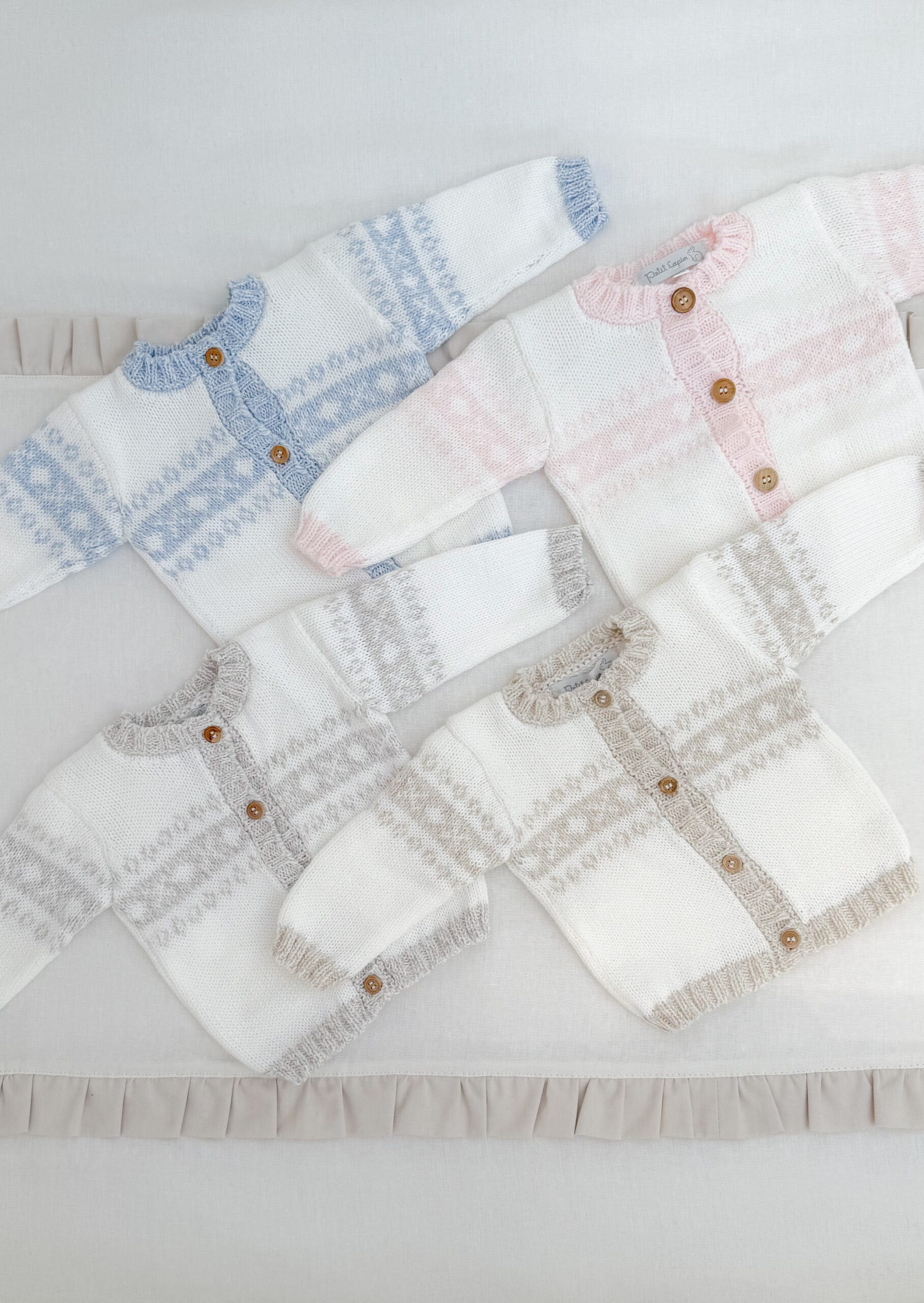 Saco modelo Canadá con detalle de guardas en pecho y mangas disponible en celeste, rosa, gris o beige. Talle 0-3/3-6/6-12/1-2/2-4 años.