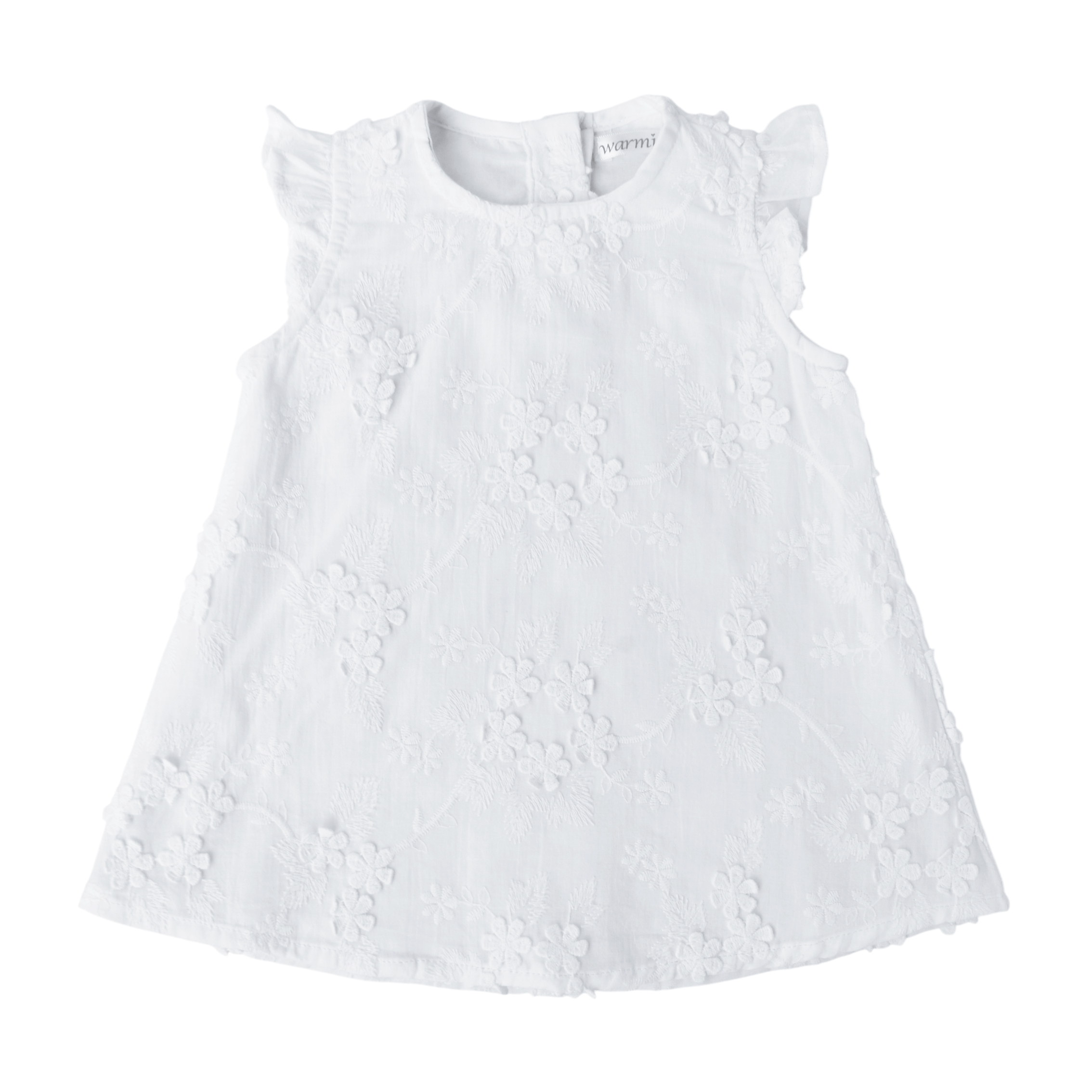 Vestido Clara broderie en relieve blanco disponible en talles 3-6/6-12/12-18/2-4/4-6/6-8/8-10 años.