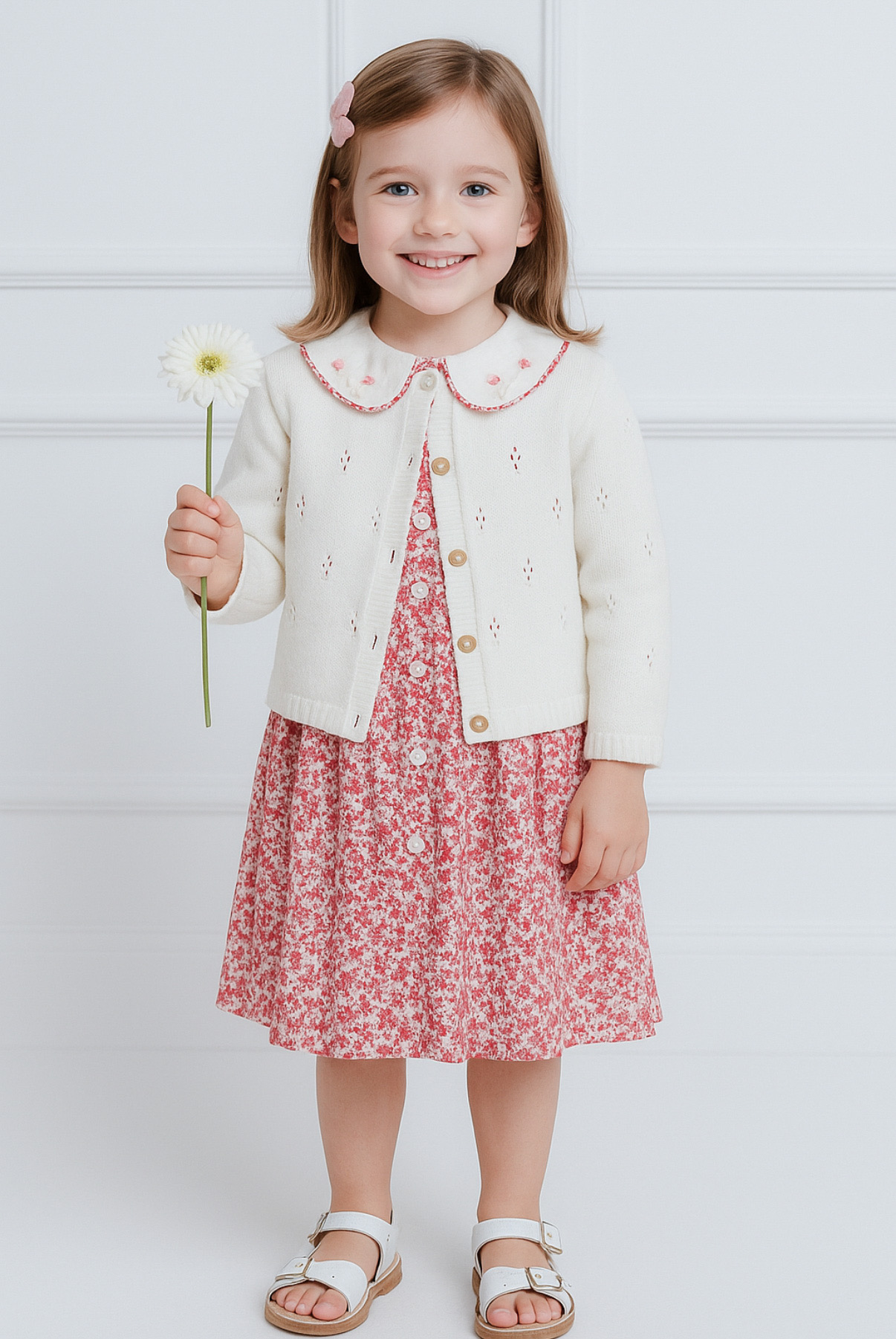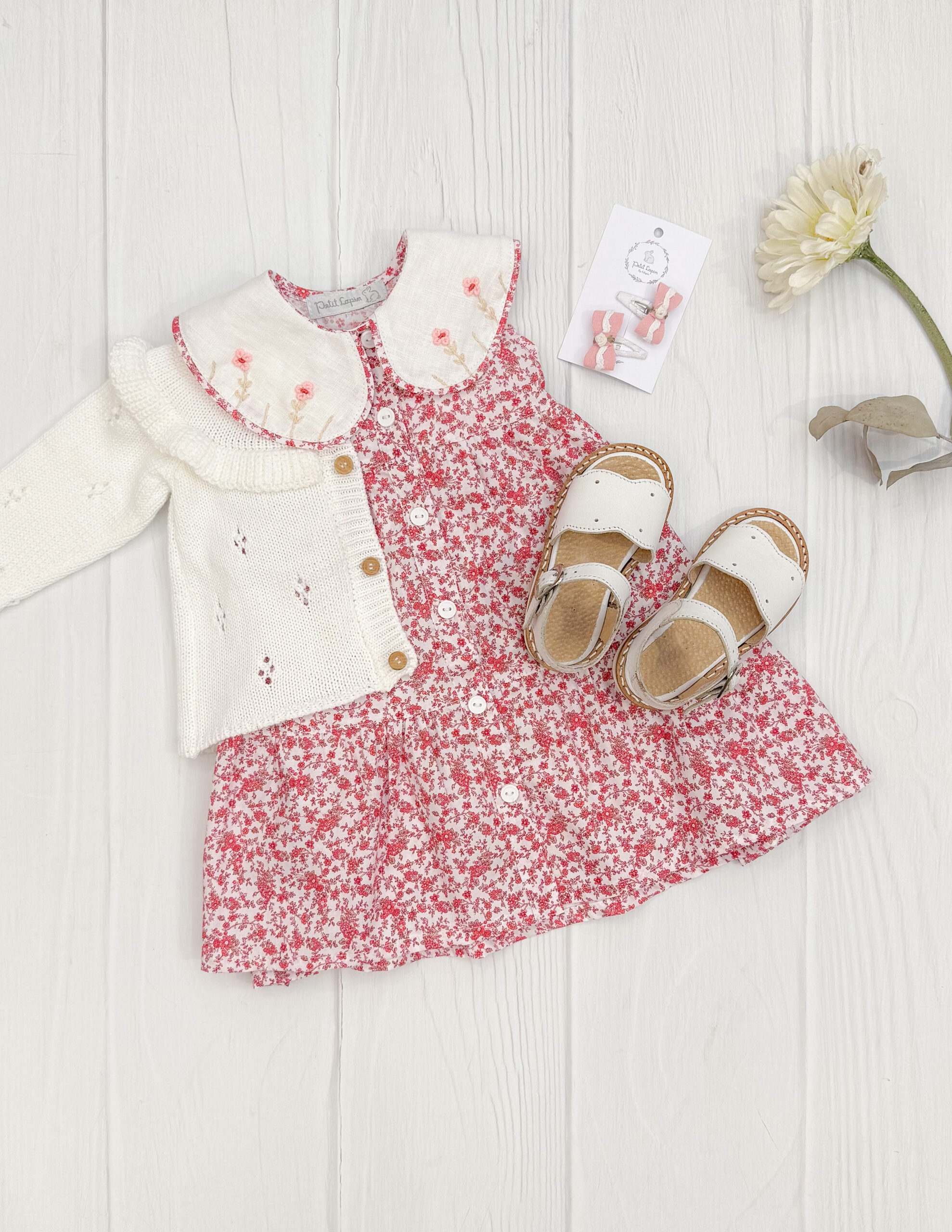 Vestido con cuello bordado estampado liberty disponible de 3-6/6-12 meses y 1-2/2-4/4-6/6-8/8-10 años.